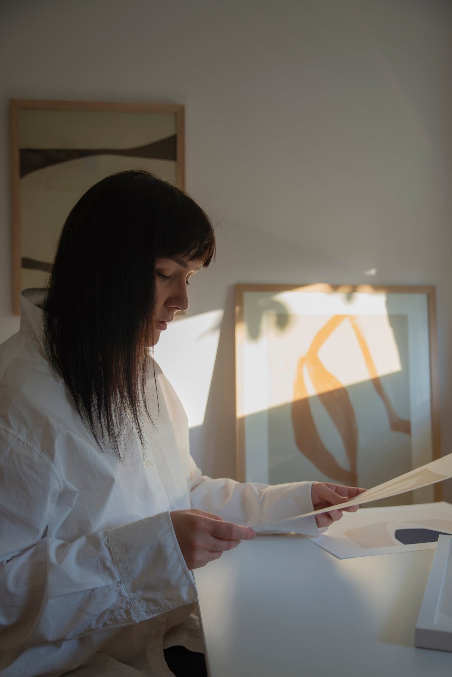 Karolinas værker er et sammenspil af moderne og abstrakte elementer, hvor naturlige former og teksturer mødes med minimalisme. Hun kombinerer håndtegnede detaljer med digitale medier, hvilket skaber en organisk og æstetisk balance. Hendes kunst inviterer beskueren til at opleve en visuel harmoni, hvor hver linje og form bidrager til et samlet udtryk af liv og skønhed.