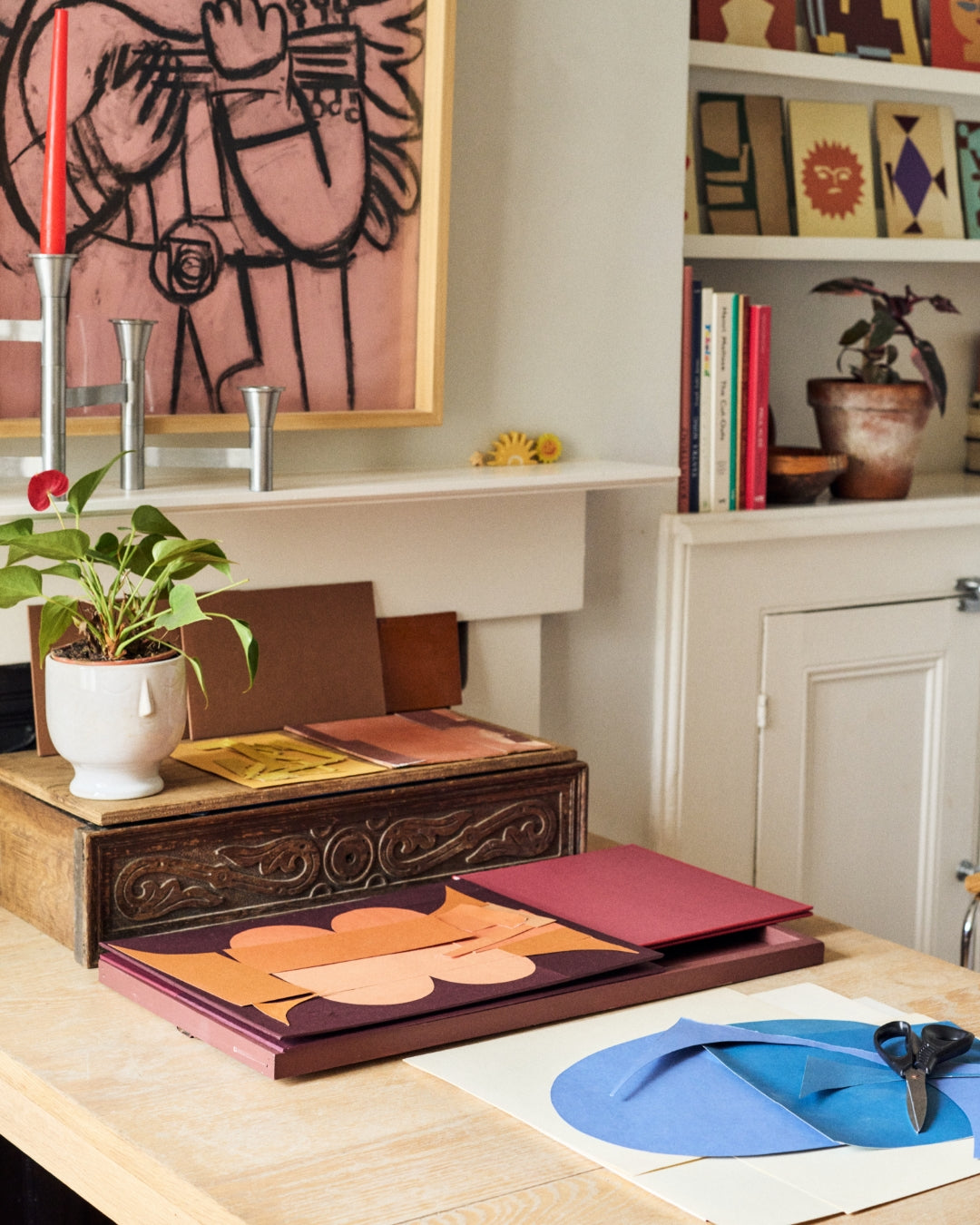 Lauri Hopkins skaber lavrelief kompositioner ved at bruge materialer som solblegede bogomslag, slikpapir og gamle papirer. Hendes værker føles både tidløse og friske, hvor hendes proces er intuitiv. Hun arrangerer, lagrer, fjerner og genopbygger materialerne, hvilket danner et konstant udviklende visuelt sprog, der udfordrer og engagerer beskueren.