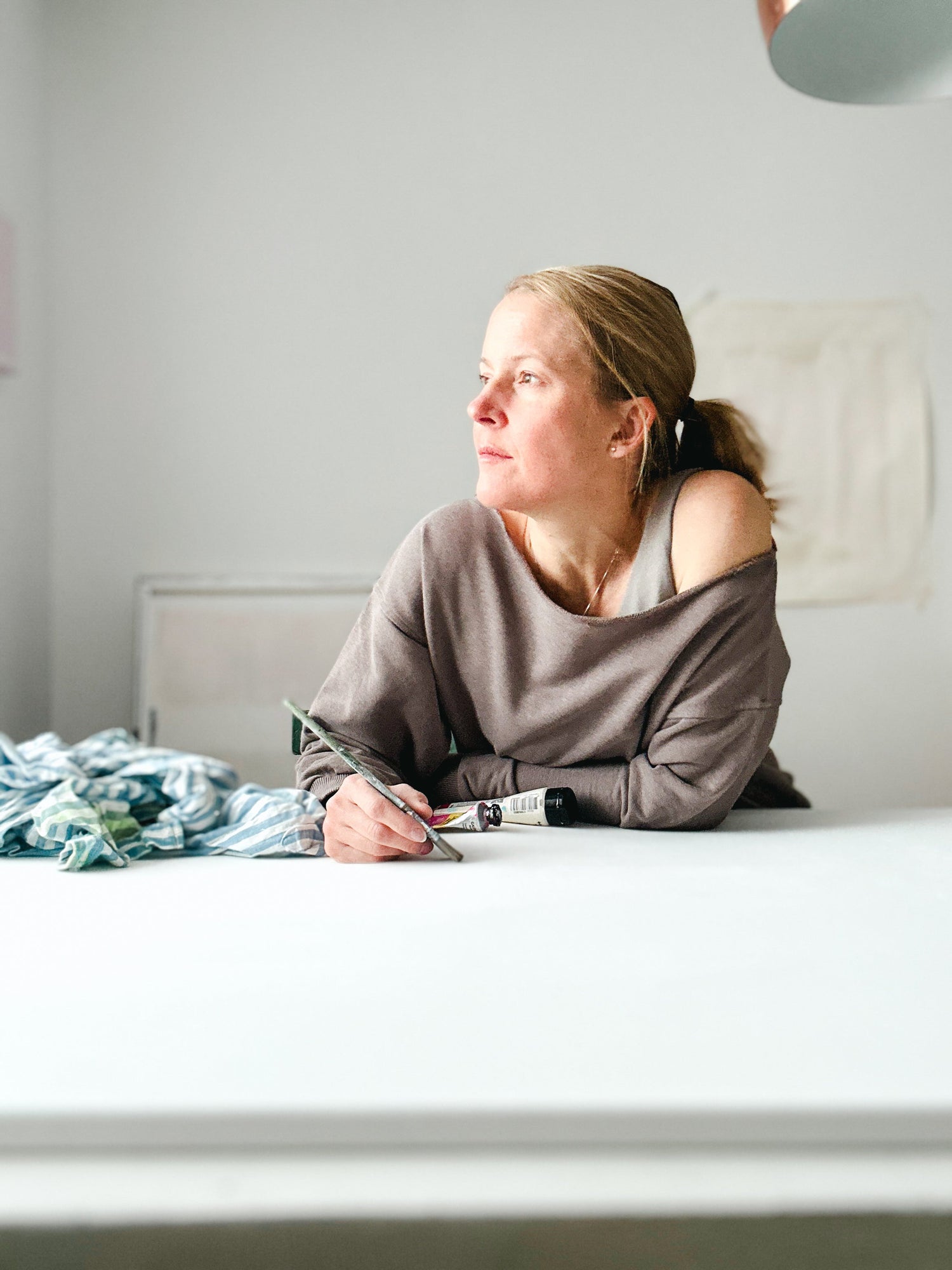 Sara omfavner de små ufuldkommenheder og lader dem blive en del af fortællingen. Inspireret af slidte parisiske facader og havets blidt formede sten skaber hun malerier, hvor farver og bevægelse vækker ro og en stille, følelsesmæssig forbindelse.
