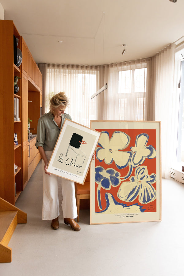 Kunstplakaten: "Eloise Chair” er skabt af kunstneren Das Rotes Rabbit og er en del af en kunstserie eksklusivt lavet til Peléton. Serien har karakter og personlighed og fungerer perfekt som et statement piece eller i samspil med de øvrige værker i serien. Farverne og den minimalistiske stil smelter sammen og skaber et harmonisk udtryk, der tilføjer dybde og elegance til ethvert rum.