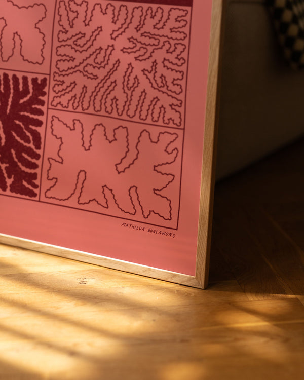 Alle værker bliver trykt og indrammet på bestilling i vores produktion i København. Vi sender inden for 2-4 hverdage, så du hurtigt kan nyde din nye kunstplakat derhjemme – uden at gå på kompromis med kvalitet eller finish.