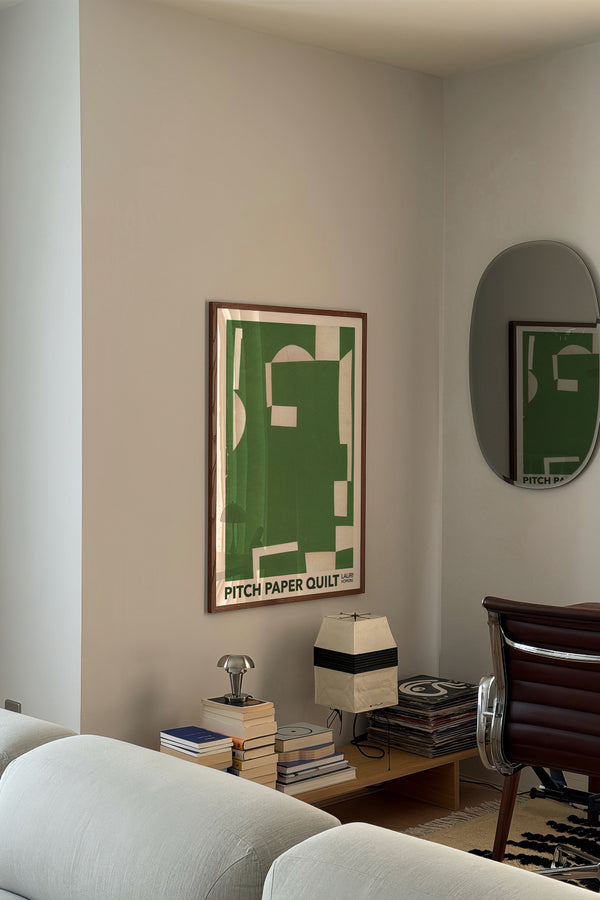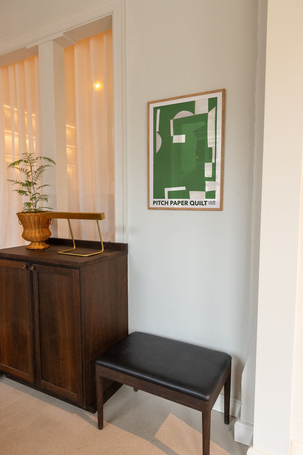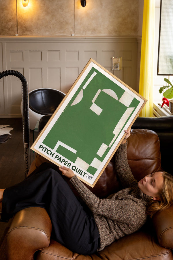 Kunstplakaten: "Pitch Paper Quilt” af kunstneren Lauri Hopkins forener papirklip og collage i en sanselig og harmonisk komposition. Værket er eksklusivt skabt til Peléton og står åbent for fri fortolkning.