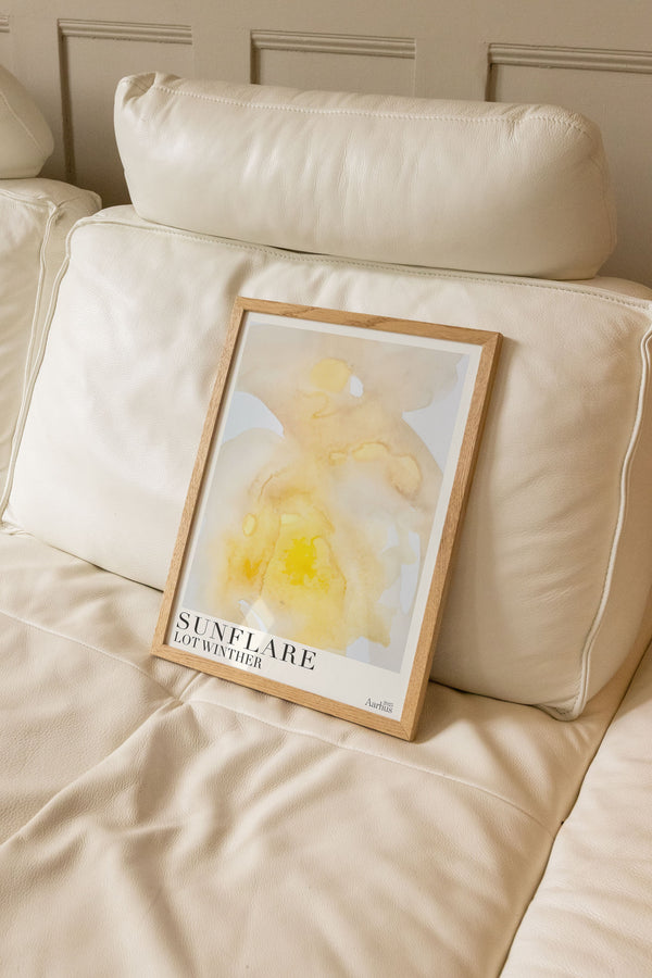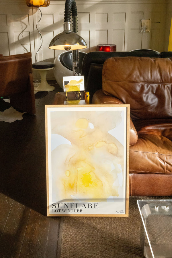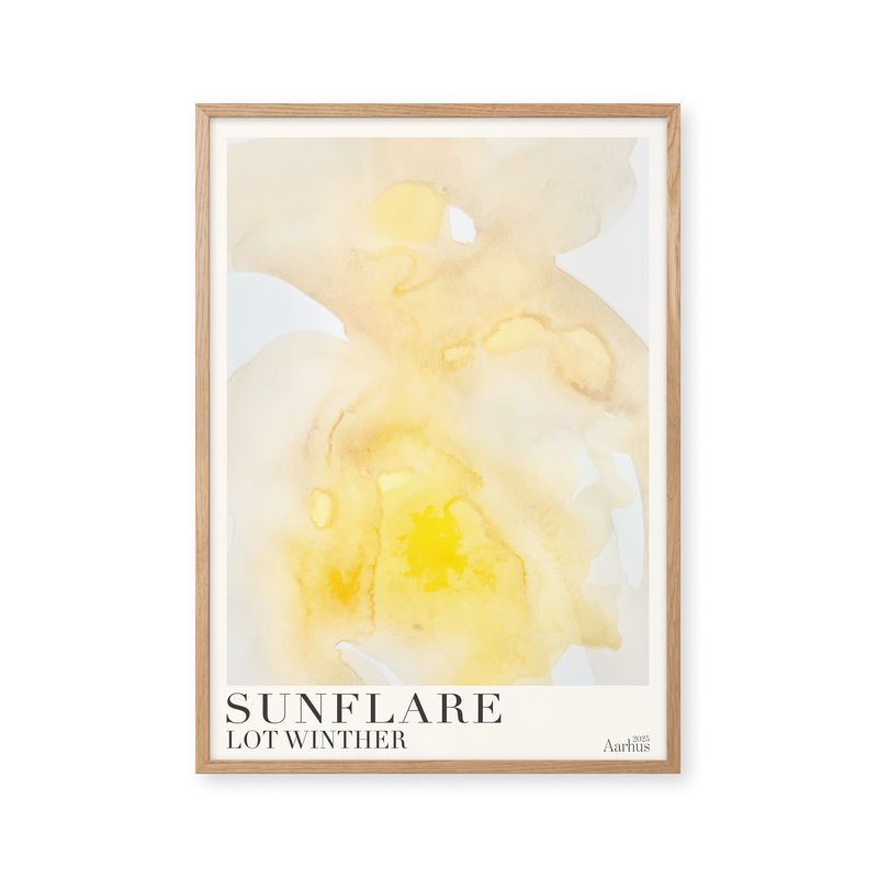 Kunstplakaten "Sunflare" af Lot Winther er en malet plakat, kurateret særligt til Peléton. Motivet er en del af en ny kollektion af farveeksplosioner, inspireret af solens farveuniverser og varme stemninger.