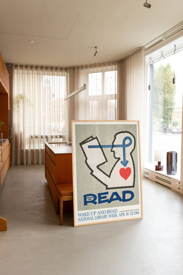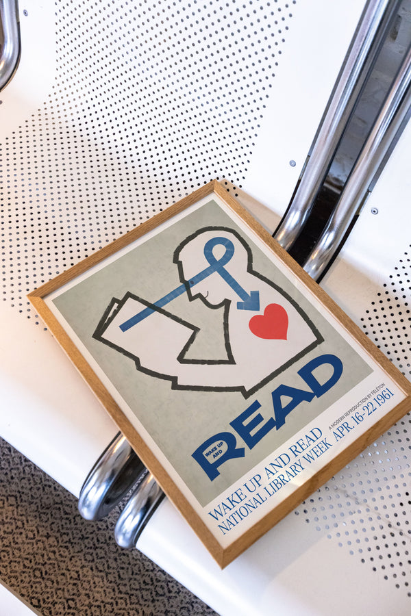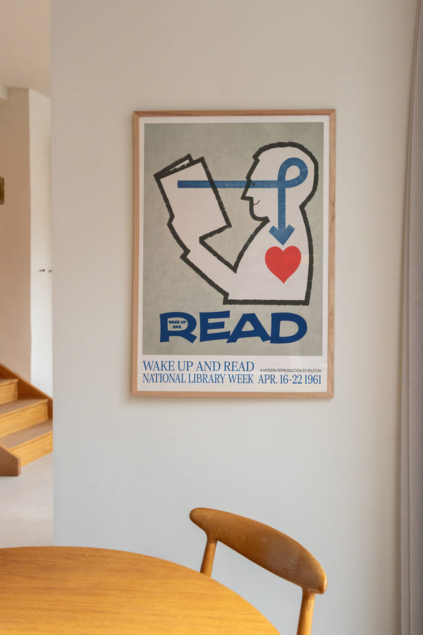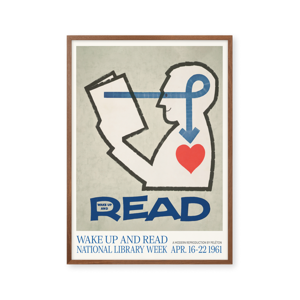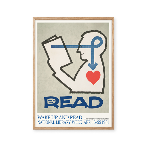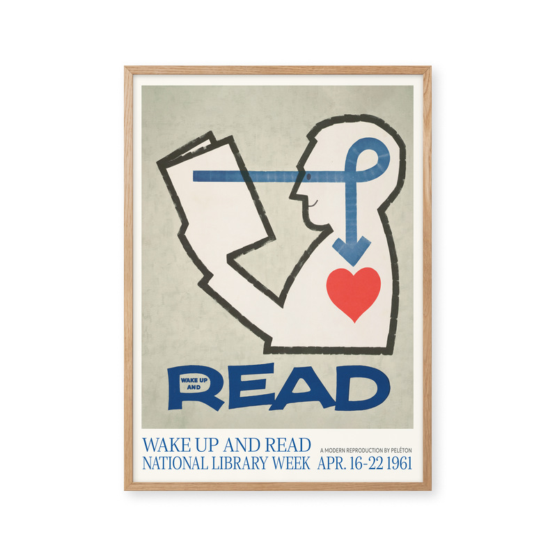 Kunstplakaten: “Wake Up and Read” lavet til National Library Week er en illustreret plakat, der er genskabt af Peléton. Denne plakat er en del af Pelétons vintage kollektion med museums layout. Kunstplakaten er produceret på kvalitetspapir, med lang levetid, høj gennemtræk og detaljerig farvegengivelse.