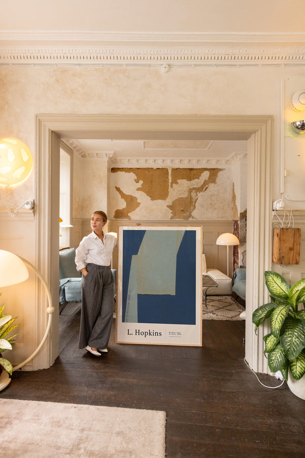 Kunstplakaten: "Window Light at Dusk” af kunstneren Lauri Hopkins forener papirklip og collage i en sanselig og harmonisk komposition. Værket er eksklusivt skabt til Peléton og står åbent for fri fortolkning.