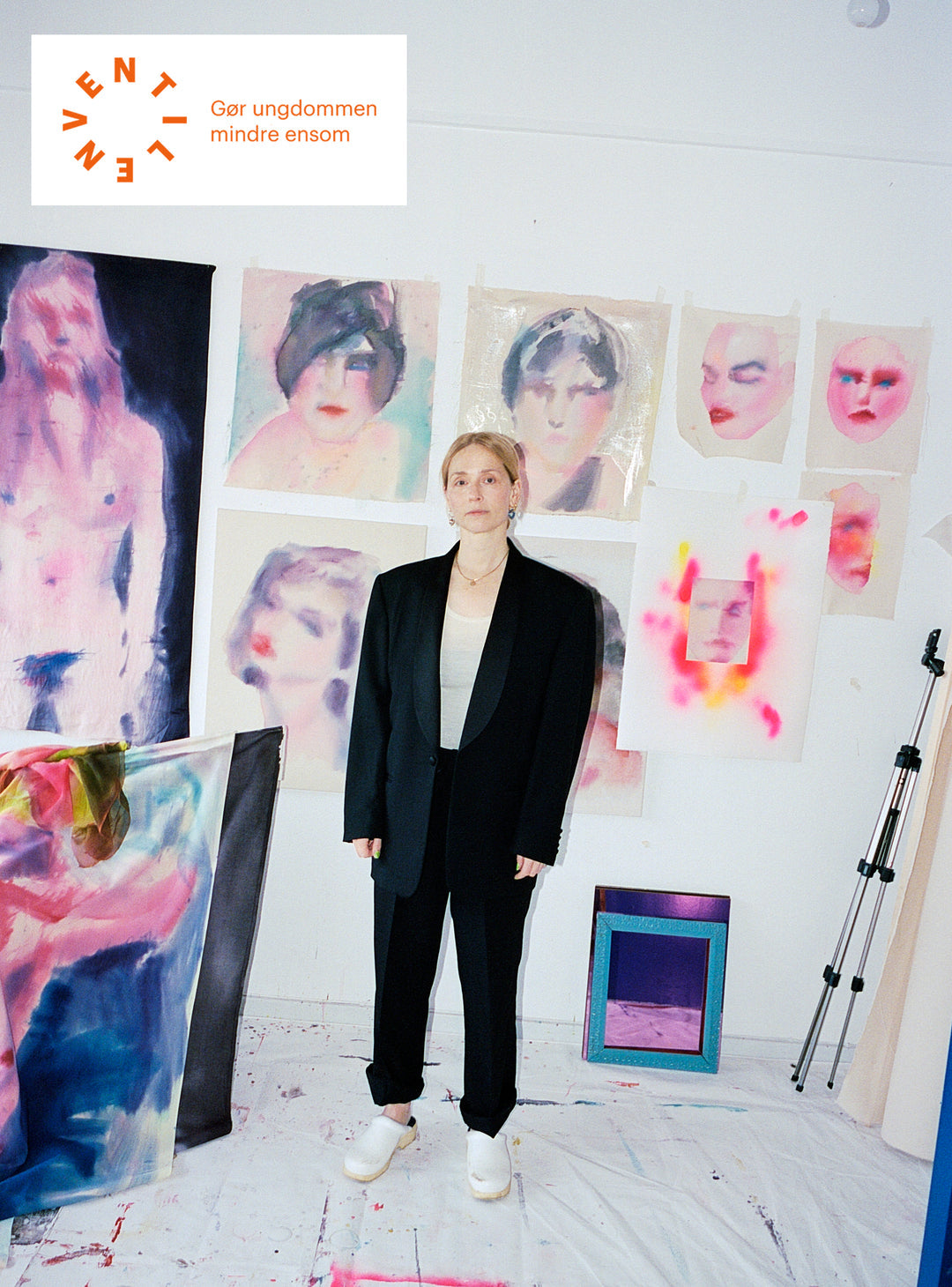 When you buy Just Sitting Here, you are not only contributing to the walls of your home but to a larger mission to help young people out of loneliness. Ventilen helps over 750 young people each year find their way to safe communities through their meeting places, created by and for young people. Birgitte Vads' work is created precisely for this purpose. Every purchase goes to Ventilen's efforts, and together we can raise awareness about loneliness among young people and support them in finding their place in the community.