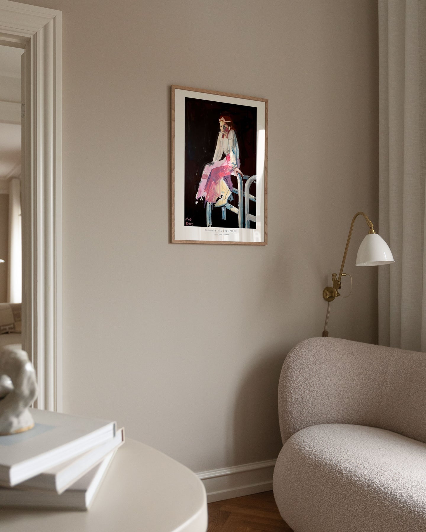 In Denmark, 19% of young people between 16 and 24 years old feel lonely, and it can be a difficult feeling to handle alone. On the occasion of Ventilen's 25th anniversary, the artist Birgitte Vad together with Peléton has created the poster Just Sitting Here to shed light on this serious problem. This poster is more than just art – it is a symbol of hope and community. With each purchase, 25% of the sales go directly to Ventilen's work, which among other things includes creating safe meeting places for young people across the country, so they can find support, understanding, and a sense of community. Let the art speak, and join in making a difference for those who need help.