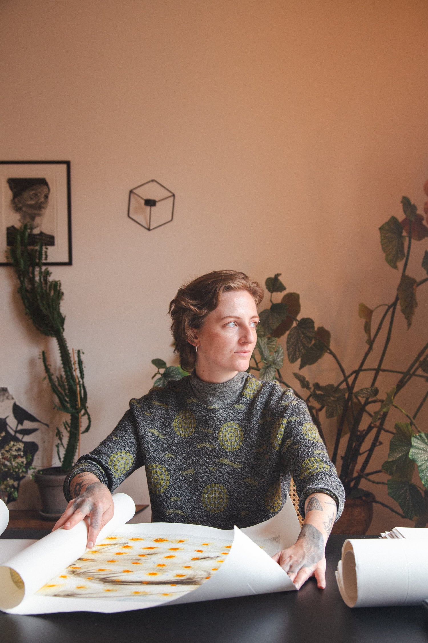 Julie works across several media, with tattooing as her primary practice. Alongside this, she unfolds her practice through drawing, sculpture, printmaking, and analog photography. She draws inspiration from the close and immediately present, where relationships and nature form the basis. The work process often revolves around iterations, where a motif is repeated, shifted, and broken down.