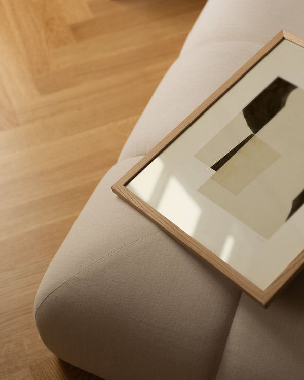 The Frames in oak are made of solid oak. The dark variant is stained to achieve a deep, warm tone, while the black Frame is made of black-painted pine with the same elegant profile.