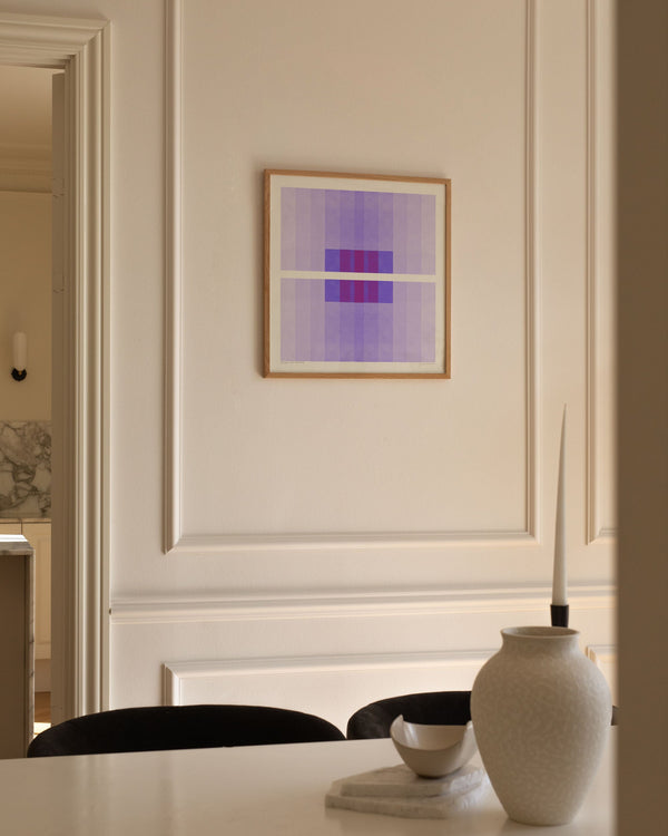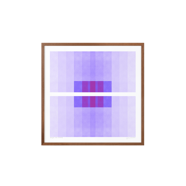 The art print: “Color Space: Lilac and Berry” by artists Jessica Pundstone is a graphic illustrated poster, exclusively made for Peléton. It has been important to them that the poster is open to interpretation. This work is part of a collection of exclusive art prints that express minimalism and simplicity.