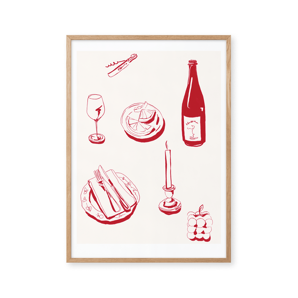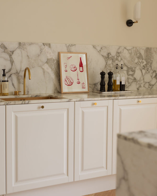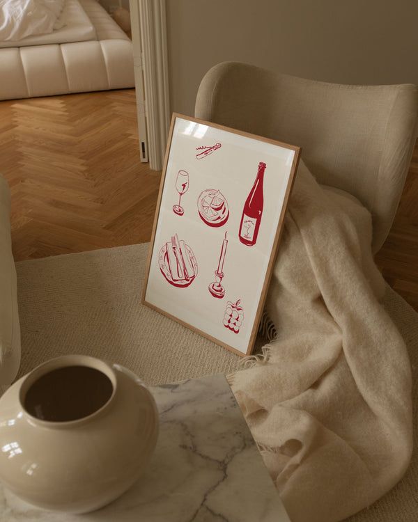 The art poster: "deconstructed dinner - cream" by the artist Kiki Makes is an illustrated poster curated for Peléton. This work was created digitally using minimalist colors and lines.