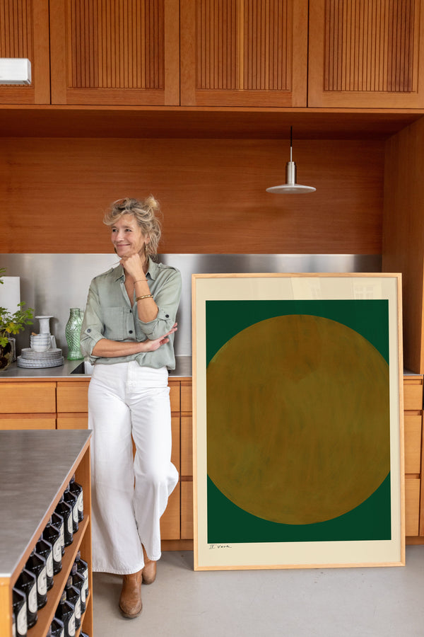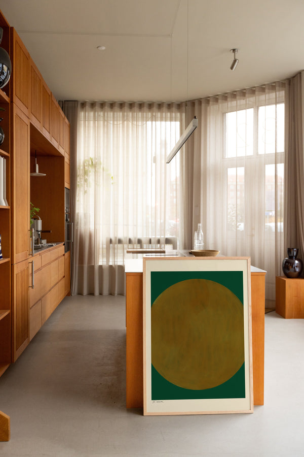 Kunstplakaten: “No. 4, Verde” er skabt af kunstneren Das Rotes Rabbit og er en del af en kunstserie eksklusivt lavet til Peléton. Serien har karakter og personlighed og fungerer perfekt som et statement piece eller i samspil med de øvrige værker i serien. Farverne og den minimalistiske stil smelter sammen og skaber et harmonisk udtryk, der tilføjer dybde og elegance til ethvert rum.