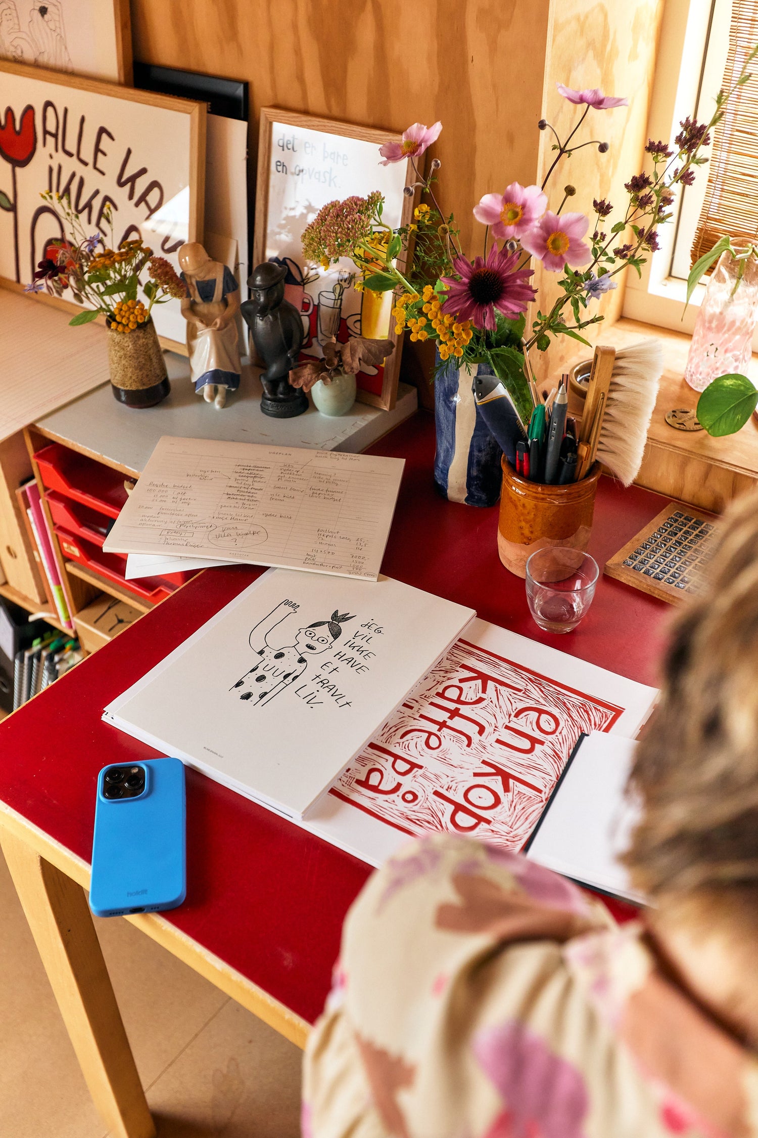 Line Jensen erzählt ihre Geschichte durch kleine tagebuchähnliche Striche, als ob sie sich durchs Leben zeichnet. Sie begann, den Alltag als Mutter zu dokumentieren, und ihre Werke fungieren als stille Schnappschüsse von Chaos und Ruhe. Jeder Strich ist authentisch und persönlich – Kunst, die zur Reflexion und Verbundenheit mit den Gefühlen einlädt, die wir alle kennen.