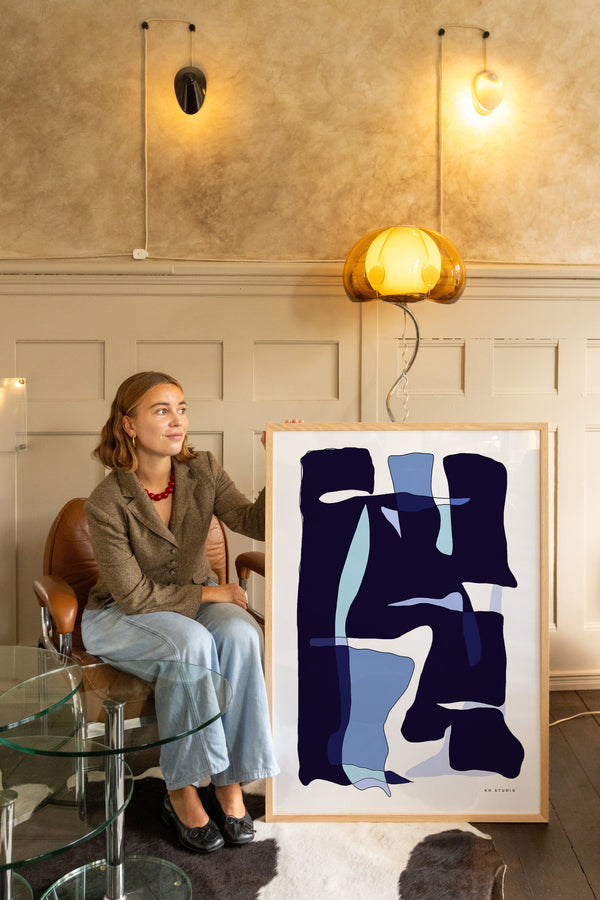 Karla Hymans kunstplakat "Deep" er en del af en farverig kollektion udviklet specielt til Peléton, og som hylder legende kompositioner og stærke farvevalg. Hendes værker er præget af en enkel og abstrakt stil, hvor form og farver spiller tæt sammen.