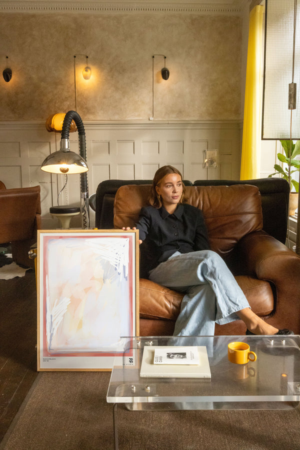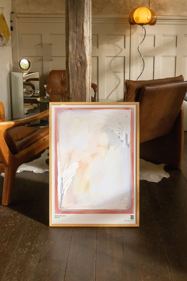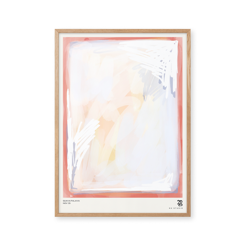 Karla Hymans kunstplakat "Guava Palava" er en del af en farverig kollektion udviklet specielt til Peléton, og som hylder legende kompositioner og stærke farvevalg. Hendes værker er præget af en enkel og abstrakt stil, hvor form og farver spiller tæt sammen.