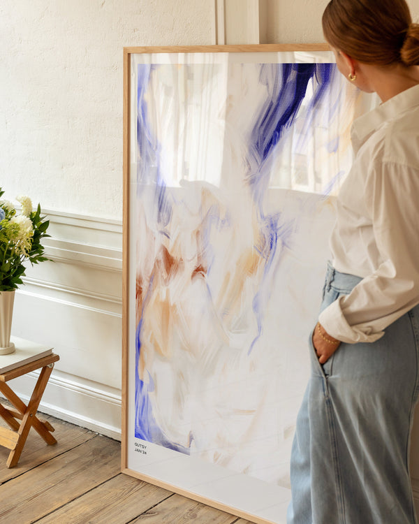 Karla Hymans kunstplakat "Gutsy" er en del af en farverig kollektion udviklet specielt til Peléton, og som hylder legende kompositioner og stærke farvevalg. Hendes værker er præget af en enkel og abstrakt stil, hvor form og farver spiller tæt sammen.