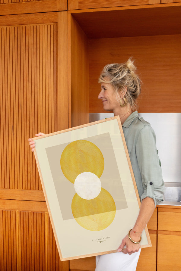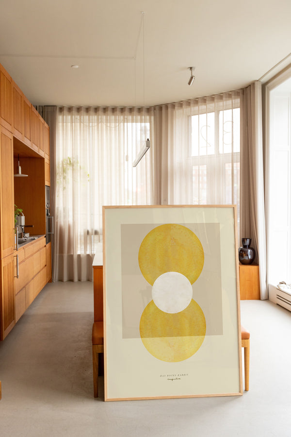 Kunstplakaten: "Imagination” er skabt af kunstneren Das Rotes Rabbit og er en del af en kunstserie eksklusivt lavet til Peléton. Serien har karakter og personlighed og fungerer perfekt som et statement piece eller i samspil med de øvrige værker i serien. Farverne og den minimalistiske stil smelter sammen og skaber et harmonisk udtryk, der tilføjer dybde og elegance til ethvert rum.