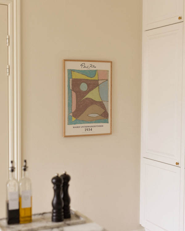 Kunstpostern: „Maske Unterwasserführer“ vom Künstler Paul Klee ist ein abstraktes illustriertes Poster, das von Peléton neu gestaltet wurde. Diese Poster-Serie mit Paul Klees farbenfrohen und abstrakten kunstpostern zeichnet sich durch seine einfallsreichen und einzigartigen Techniken aus. Dieses Poster ist Teil der Vintage-Kollektion von Peléton mit Museums-Layout. Das kunstposter wird auf hochwertigem Papier hergestellt, mit langer Lebensdauer, hoher Durchlässigkeit und detailreicher Farbwiedergabe.