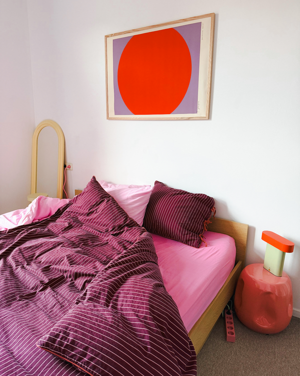 Kunstplakaten: “No. 1, Porpora” er skabt af kunstneren Das Rotes Rabbit og er en del af en kunstserie eksklusivt lavet til Peléton. Serien har karakter og personlighed og fungerer perfekt som et statement piece eller i samspil med de øvrige værker i serien. Farverne og den minimalistiske stil smelter sammen og skaber et harmonisk udtryk, der tilføjer dybde og elegance til ethvert rum.