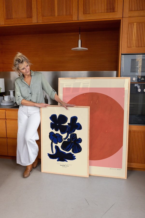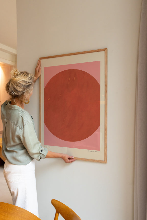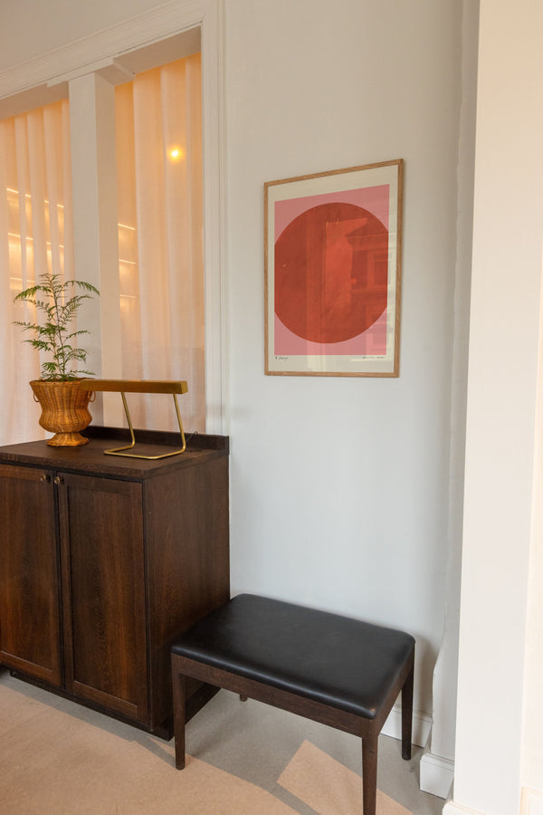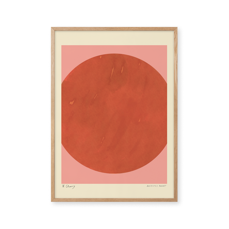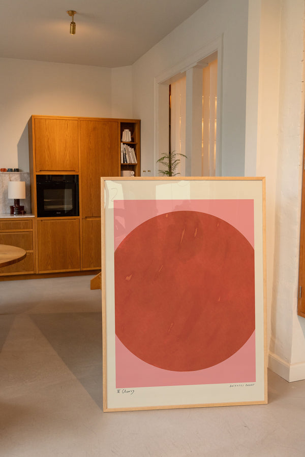 Kunstplakaten: "No. 6, Cherry” er skabt af kunstneren Das Rotes Rabbit og er en del af en kunstserie eksklusivt lavet til Peléton. Serien har karakter og personlighed og fungerer perfekt som et statement piece eller i samspil med de øvrige værker i serien. Farverne og den minimalistiske stil smelter sammen og skaber et harmonisk udtryk, der tilføjer dybde og elegance til ethvert rum.