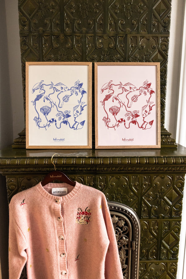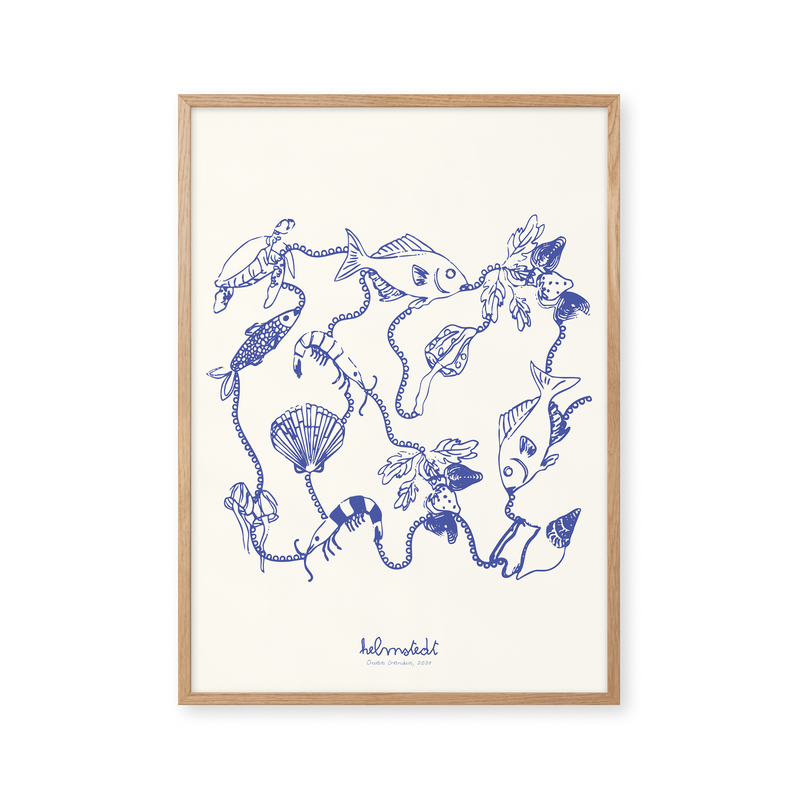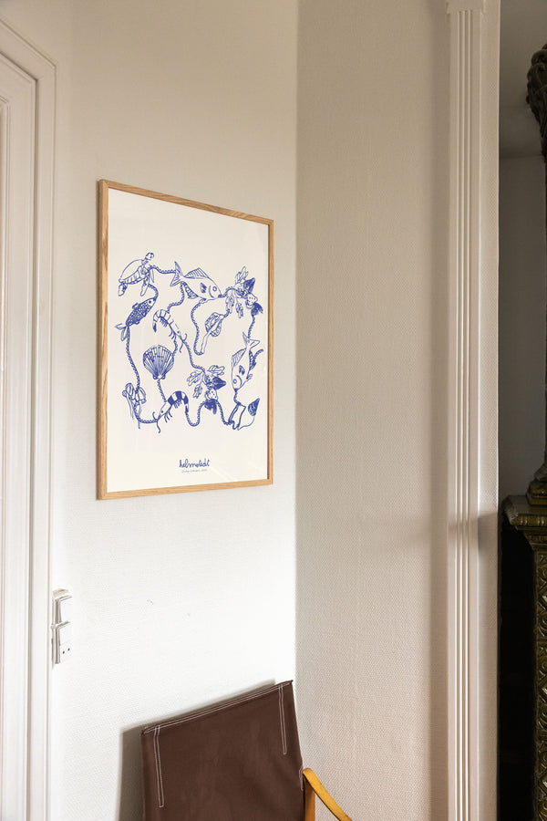 Kunstplakaten "Ocean Garden – Blue" er malet af Emilie Helmstedt og indgår i den eksklusive kunstserie Peléton x Helmstedt, hvor interiør, design og fashion smelter sammen i et fælles univers. Et helt unikt samarbejde, som kun kan opleves her.