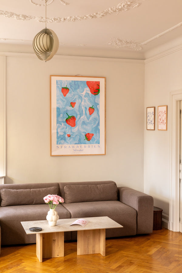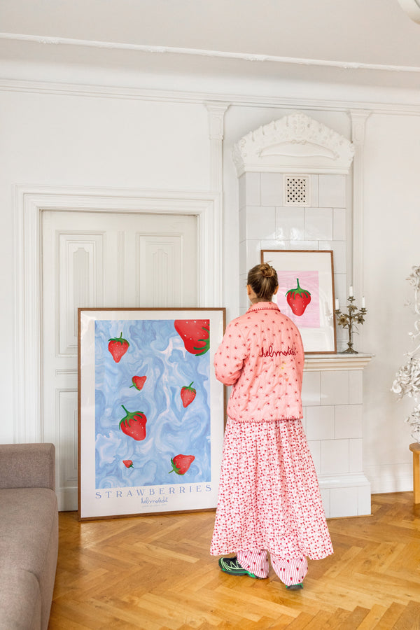 Kunstplakaten "Strawberries" er malet af Emilie Helmstedt og indgår i den eksklusive kunstserie Peléton x Helmstedt, hvor interiør, design og fashion smelter sammen i et fælles univers. Et helt unikt samarbejde, som kun kan opleves her.