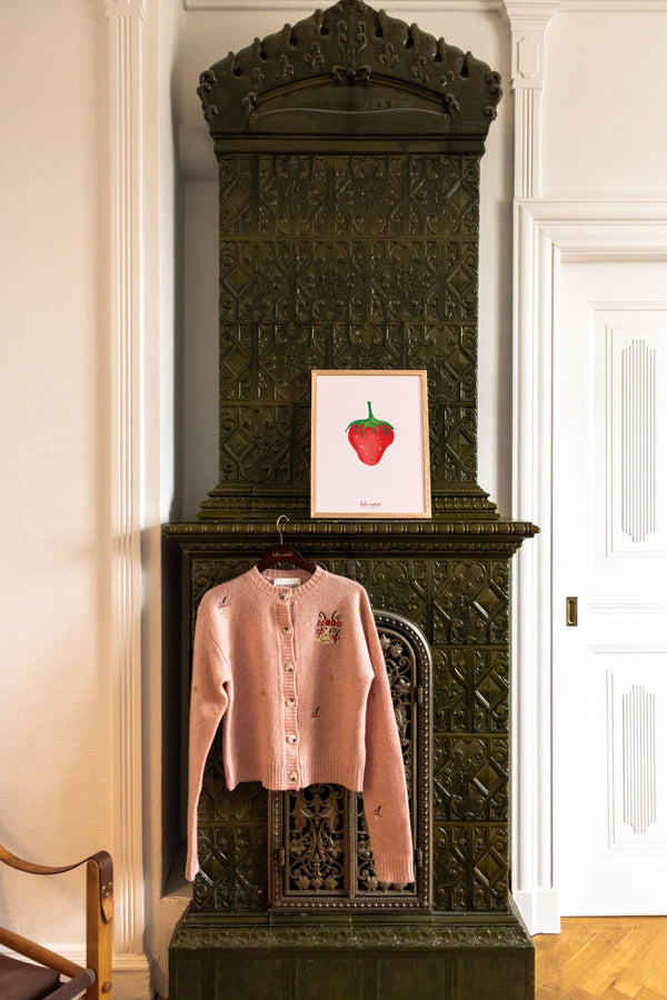 Kunstplakaten "Strawberry Feeling" er malet af Emilie Helmstedt og indgår i den eksklusive kunstserie Peléton x Helmstedt, hvor interiør, design og fashion smelter sammen i et fælles univers. Et helt unikt samarbejde, som kun kan opleves her.