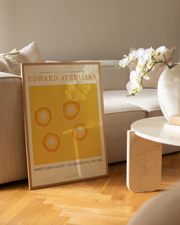 Kunstplakaten: „Preview 5-7“ des Künstlers Edward Avedisian ist ein abstraktes illustriertes Plakat, das von Peléton neu geschaffen wurde. Dieses Plakat ist Teil der Vintage-Kollektion von Peléton mit Museums-Layout. Das Kunstplakat wird auf hochwertigem Papier hergestellt, mit langer Lebensdauer, hoher Durchlässigkeit und detailreicher Farbwiedergabe.