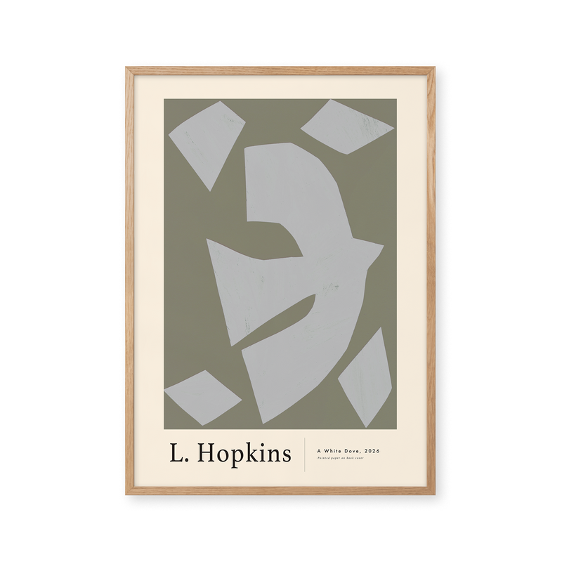 Kunstplakaten: "White Dove” af kunstneren Lauri Hopkins forener papirklip og collage i en sanselig og harmonisk komposition. Værket er eksklusivt skabt til Peléton og står åbent for fri fortolkning.