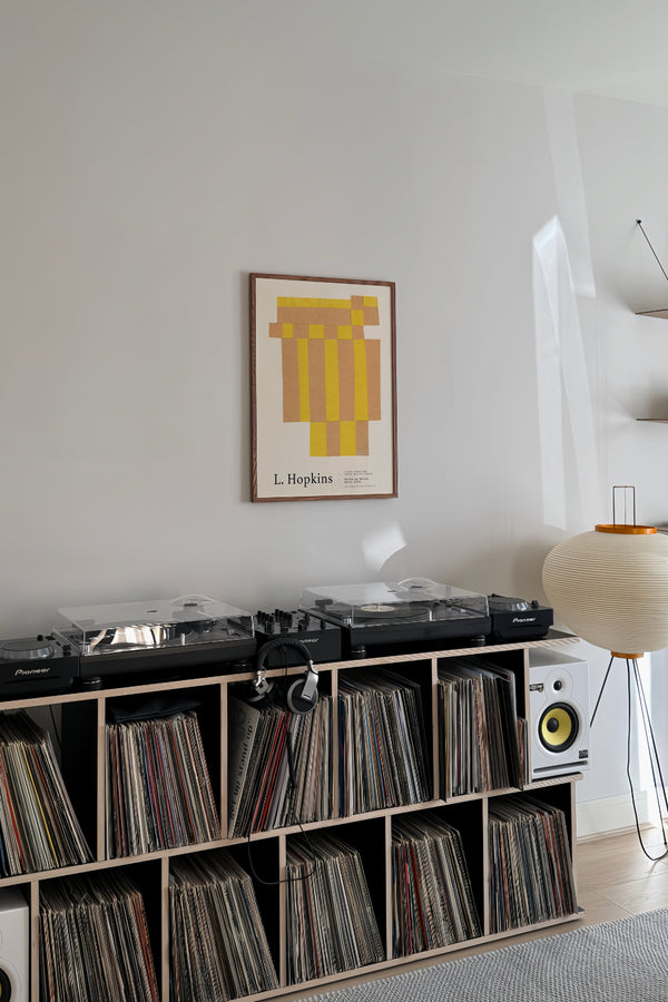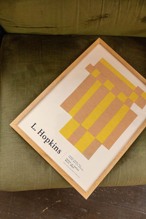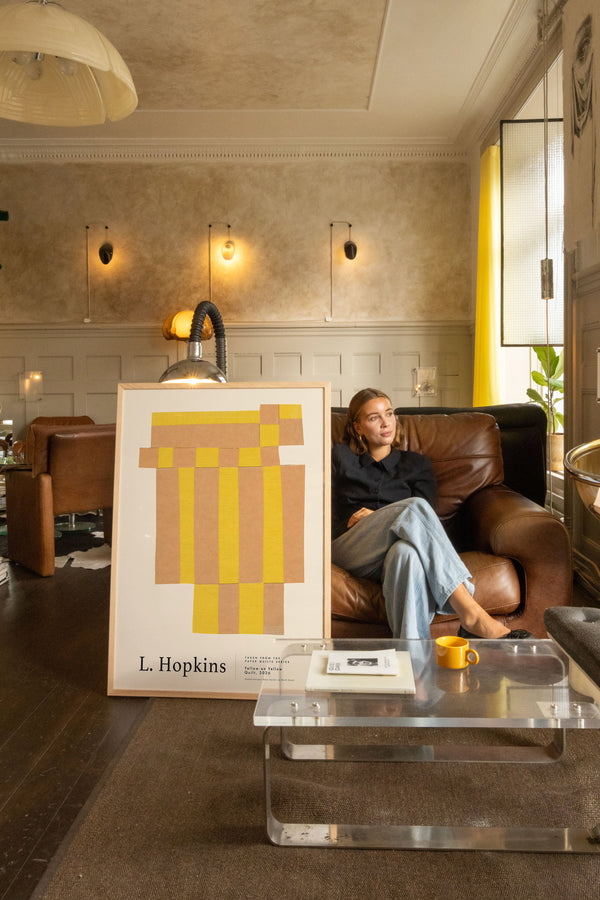 Kunstplakaten: "Yellow Quilt” af kunstneren Lauri Hopkins forener papirklip og collage i en sanselig og harmonisk komposition. Værket er eksklusivt skabt til Peléton og står åbent for fri fortolkning.